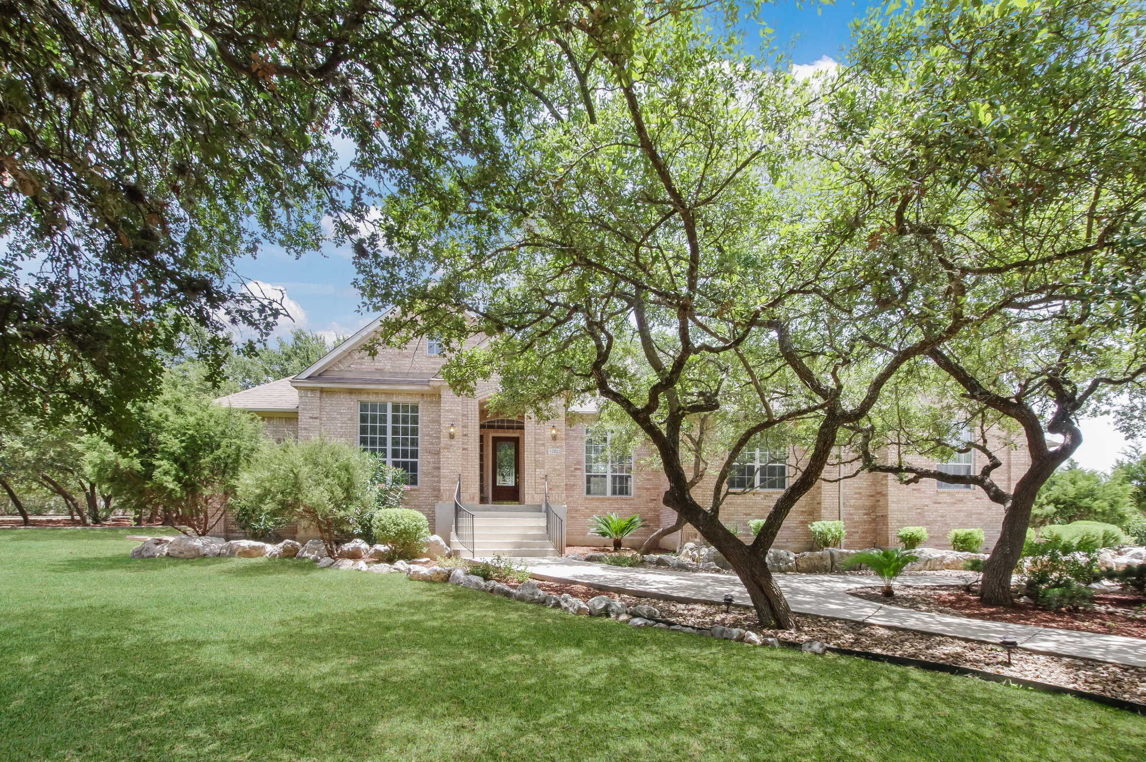Be First! This remarkable one story home is located in the unique Legend Oaks on 1.39 acre cul-de-sac lot. Custom features include extended tile and hardwoods, high ceilings, huge family room with brick fire place, custom gourmet kitchen with center island, breakfast bar, double ovens and beautiful stone accents. Private master retreat with fireplace, garden tub, shower and spacious walk-in closet. Enjoy the open formal dining, study, five bedrooms on three separate wings, three car garage, patio and deck overlooking an oak studded amazing backyard. New HEB and NEISD schools!