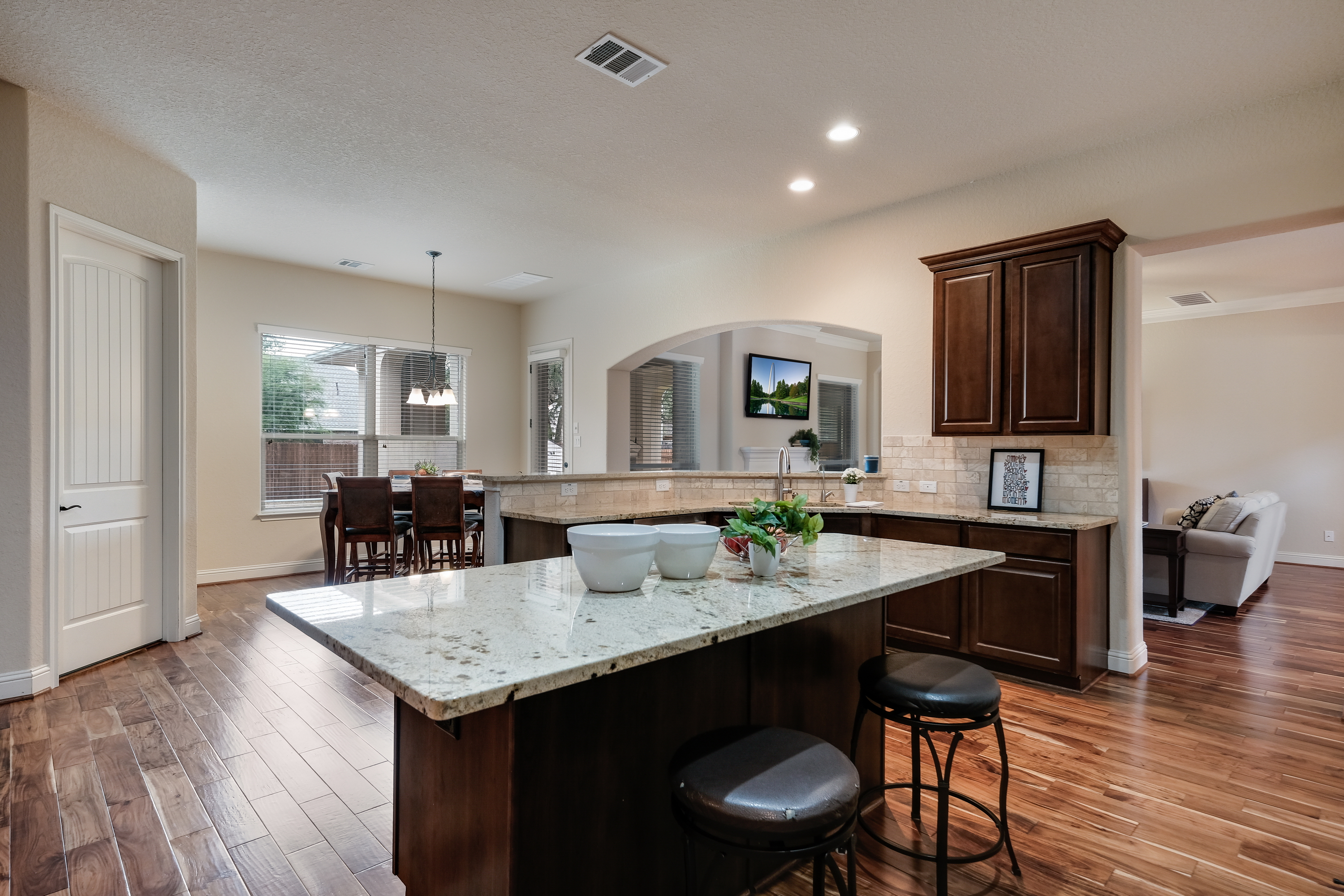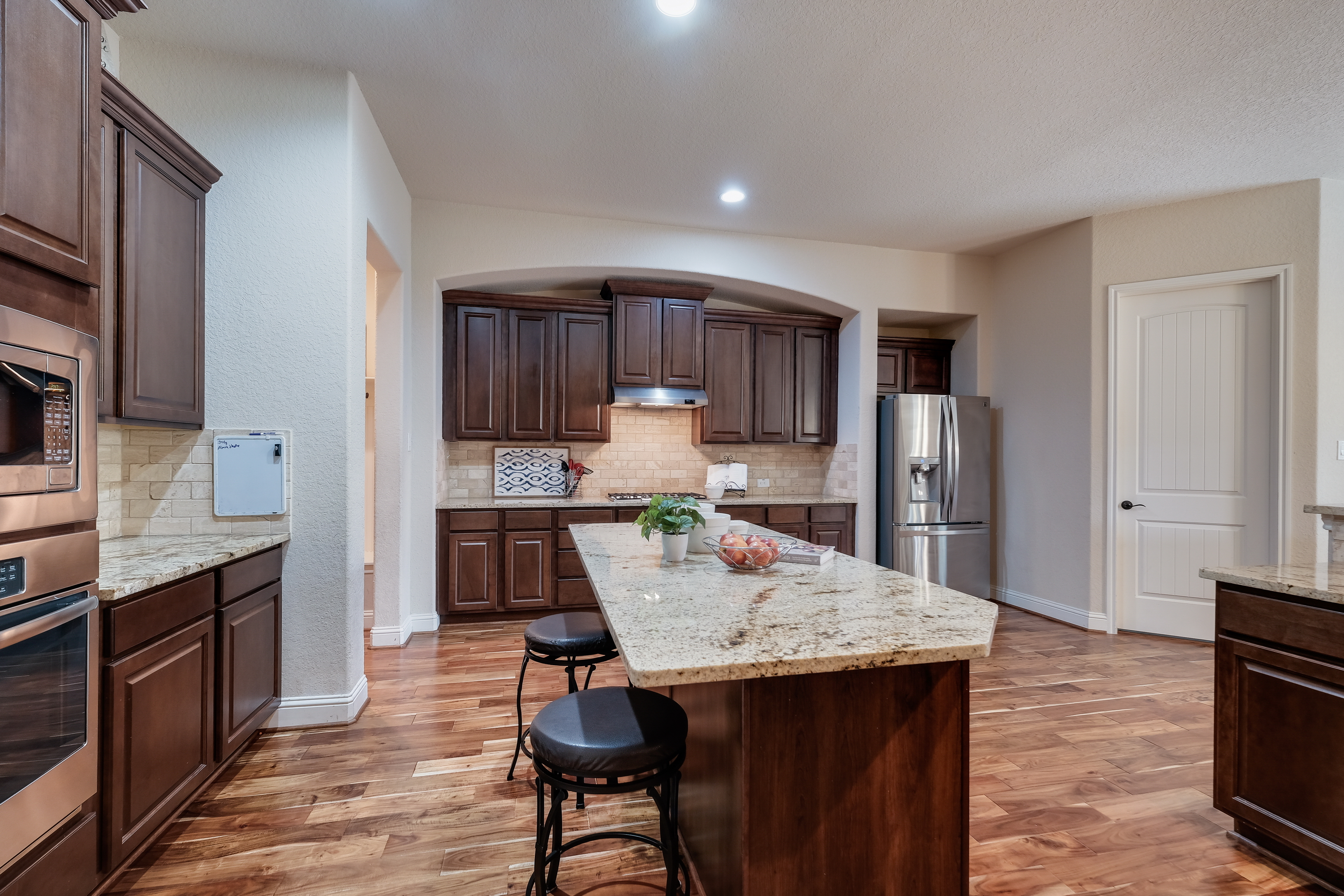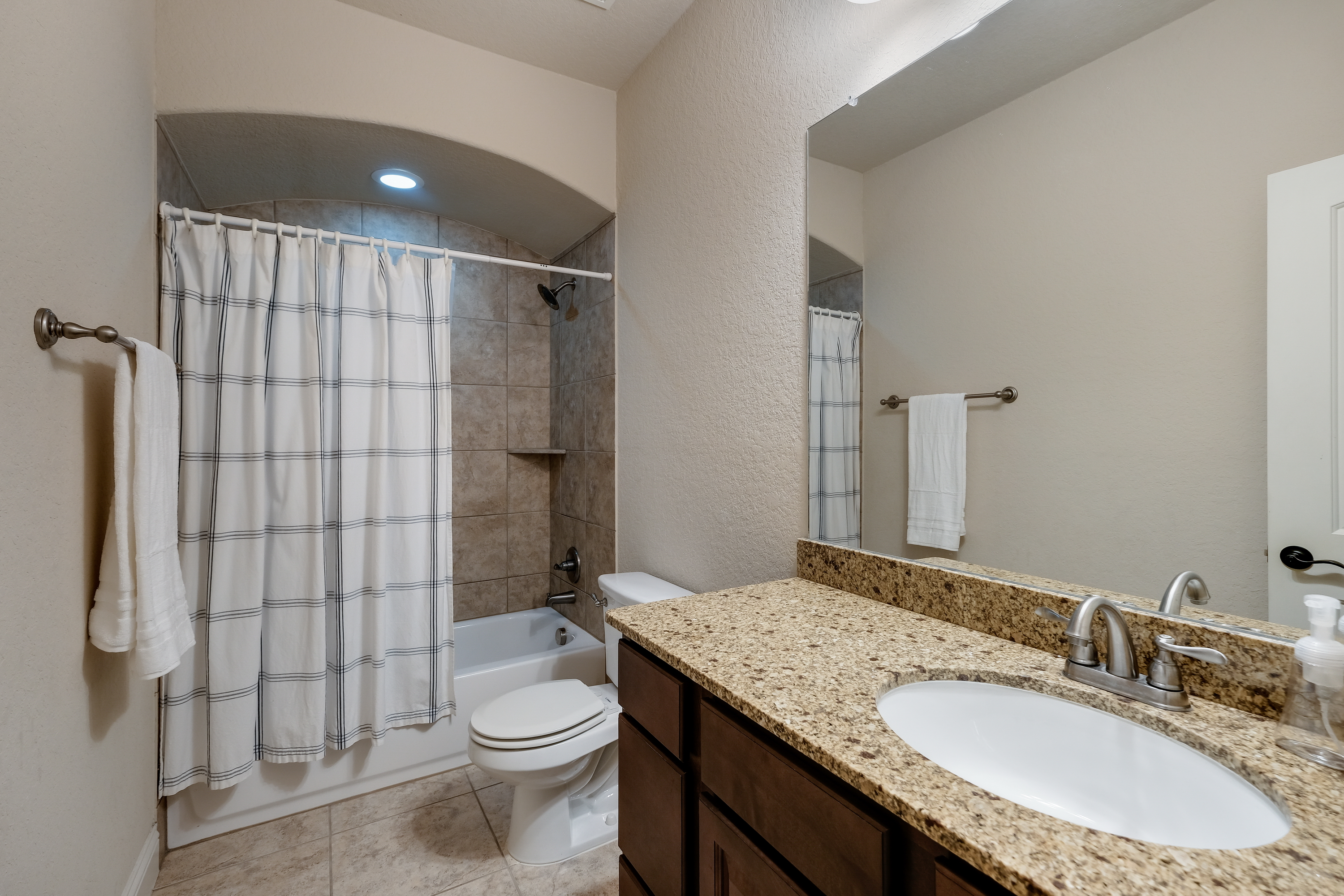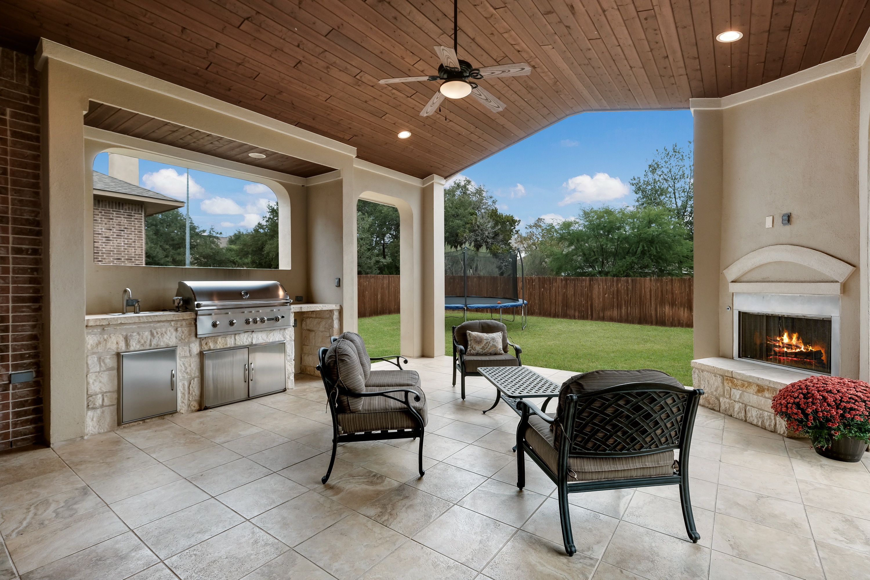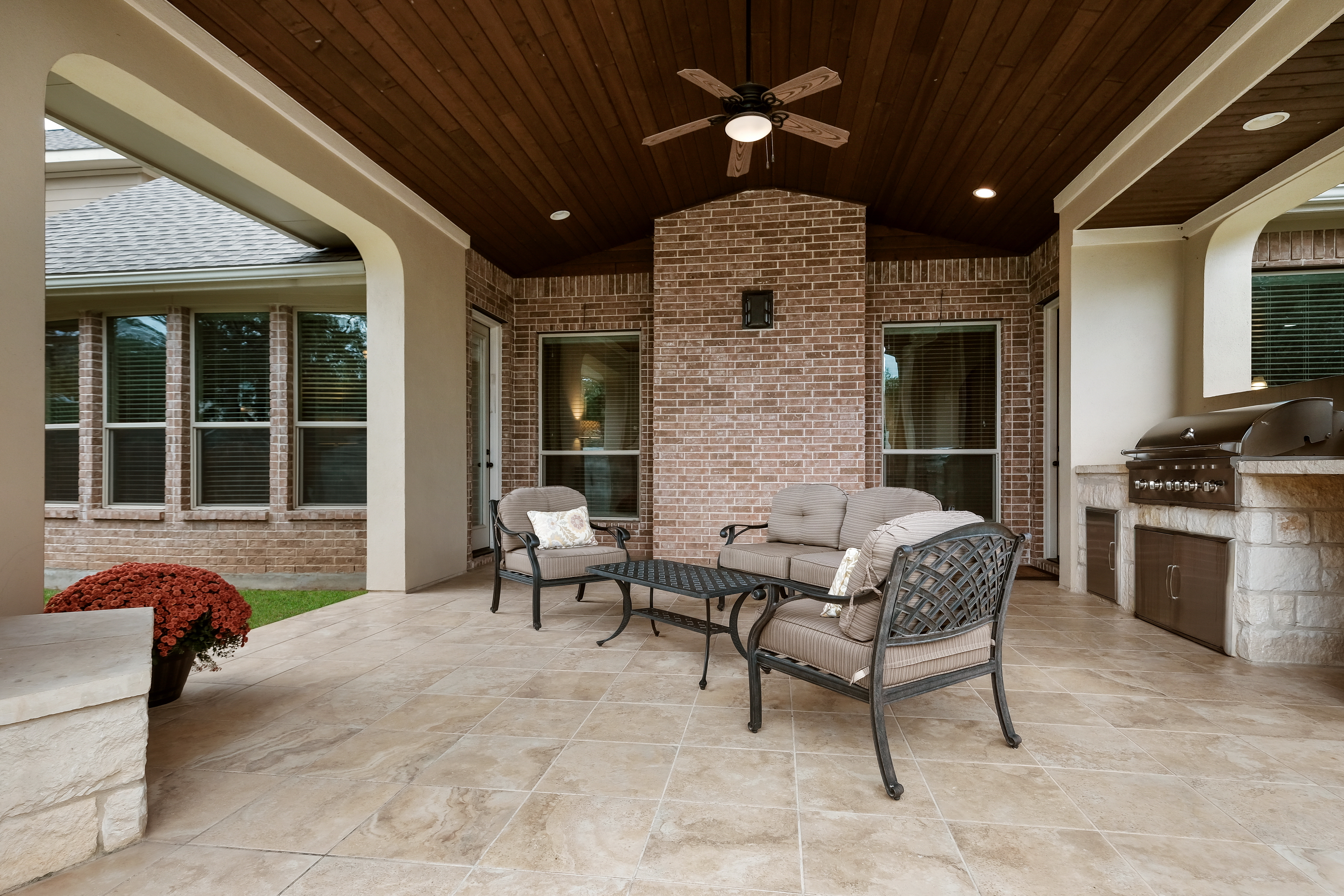 Immaculate 4223 sq ft home loaded with custom amenities located in the gated community of Terra Bella. Enjoy the spacious two-story plan with study and wonderful gourmet kitchen with gas cooking, granite and huge center island. Impressive entry with Juliet balcony overlooking the formal dining room. Private master retreat with granite, custom tile accents, his and her closets with outdoor patio access. Relax on the covered patio with outdoor kitchen, gas grill and fireplace. Upstairs game, media and spacious bedrooms. Excellent schools, neighborhood HEB!
